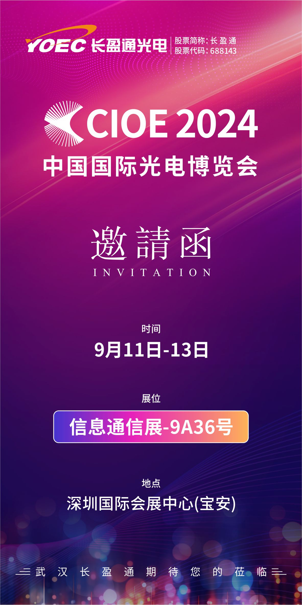 9月11-13日,jdb电子通诚邀您参加CIOE 2024中国国际光电博览会!