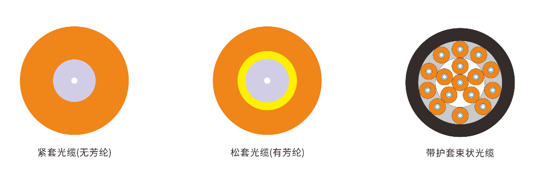 特种绞合光缆内部为有芳纶松套光缆;集束光缆(带护套束状光缆)内部为紧套光纤,可视应用要求在紧套光纤之间填充kevlar纤维以增加光缆的抗拉性能。