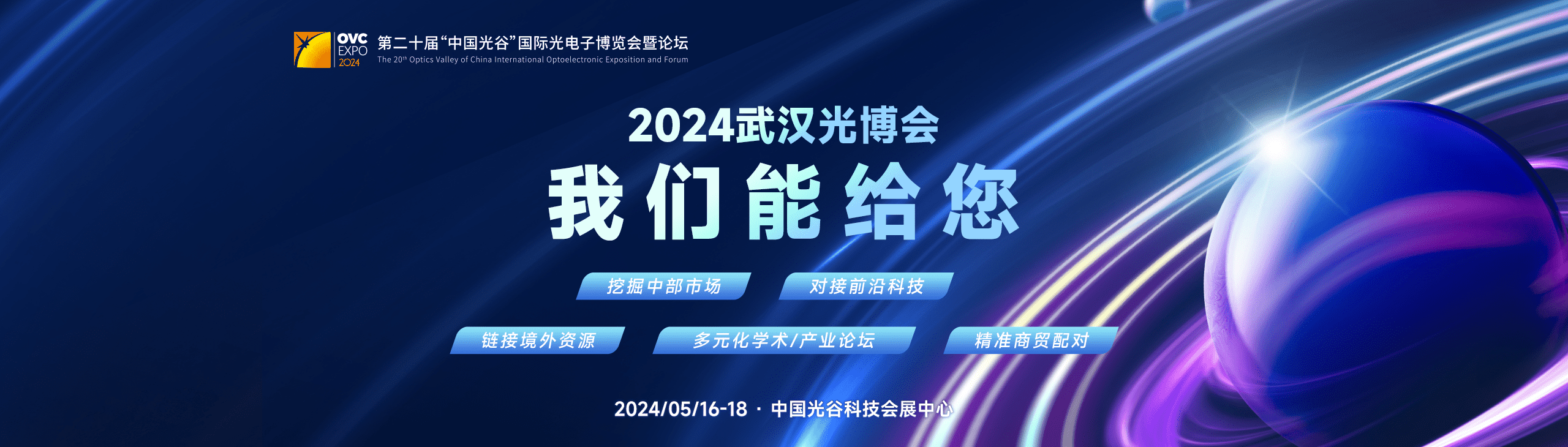 2024年第二十届“中国光谷”国际光电子博览会暨论坛(简称:武汉光博会)拟定于2024年5月16-18日在中国光谷科技会展中心举行,预计参展商超过360家,将满馆展示,专业观众近30000人,高峰论坛及技术研讨会20多场。jdb电子通公司将受邀参加此次展会,欢迎大家前来参观交流。